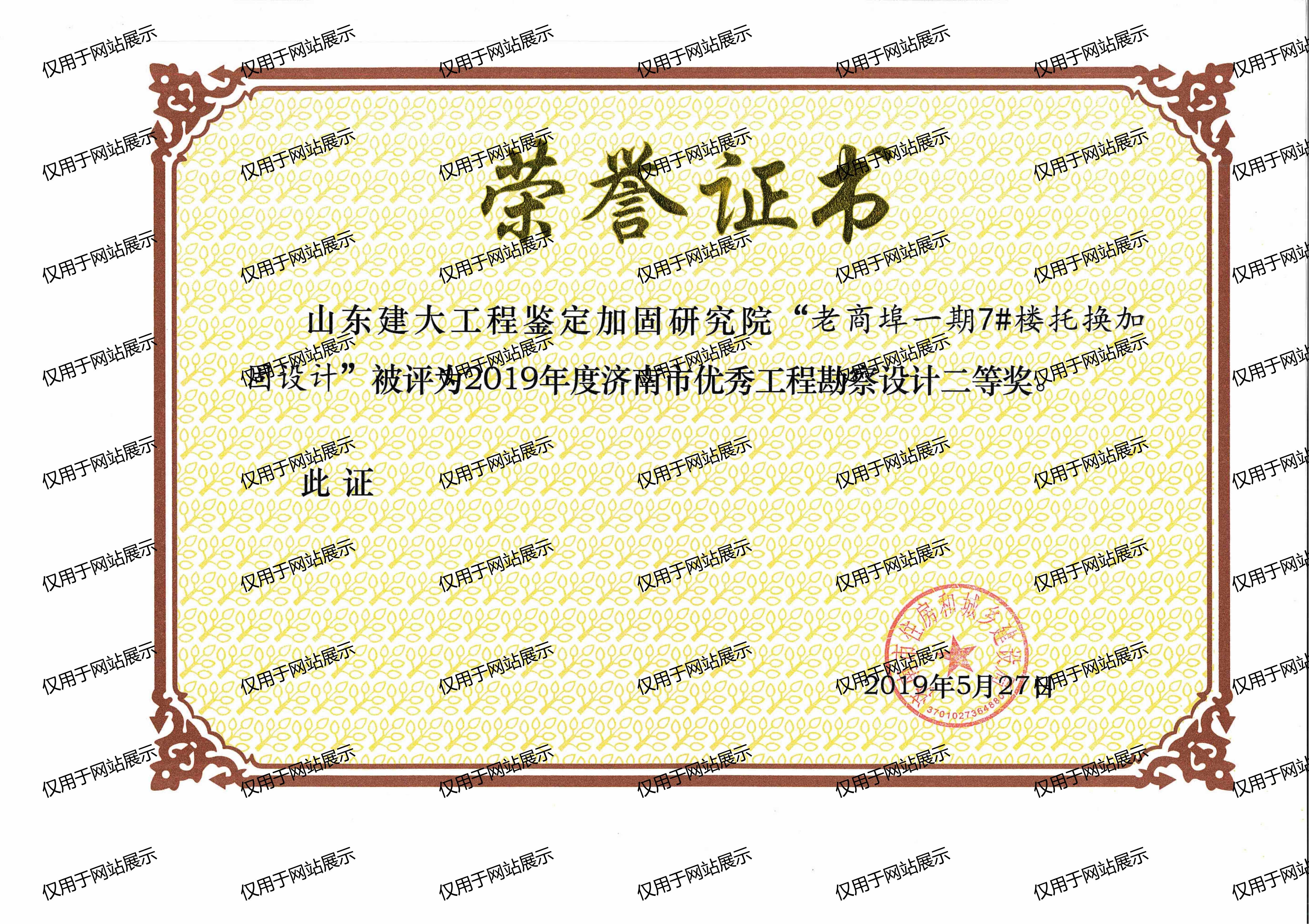 2019年度濟(jì)南市優(yōu)秀工程勘察設(shè)計二等獎