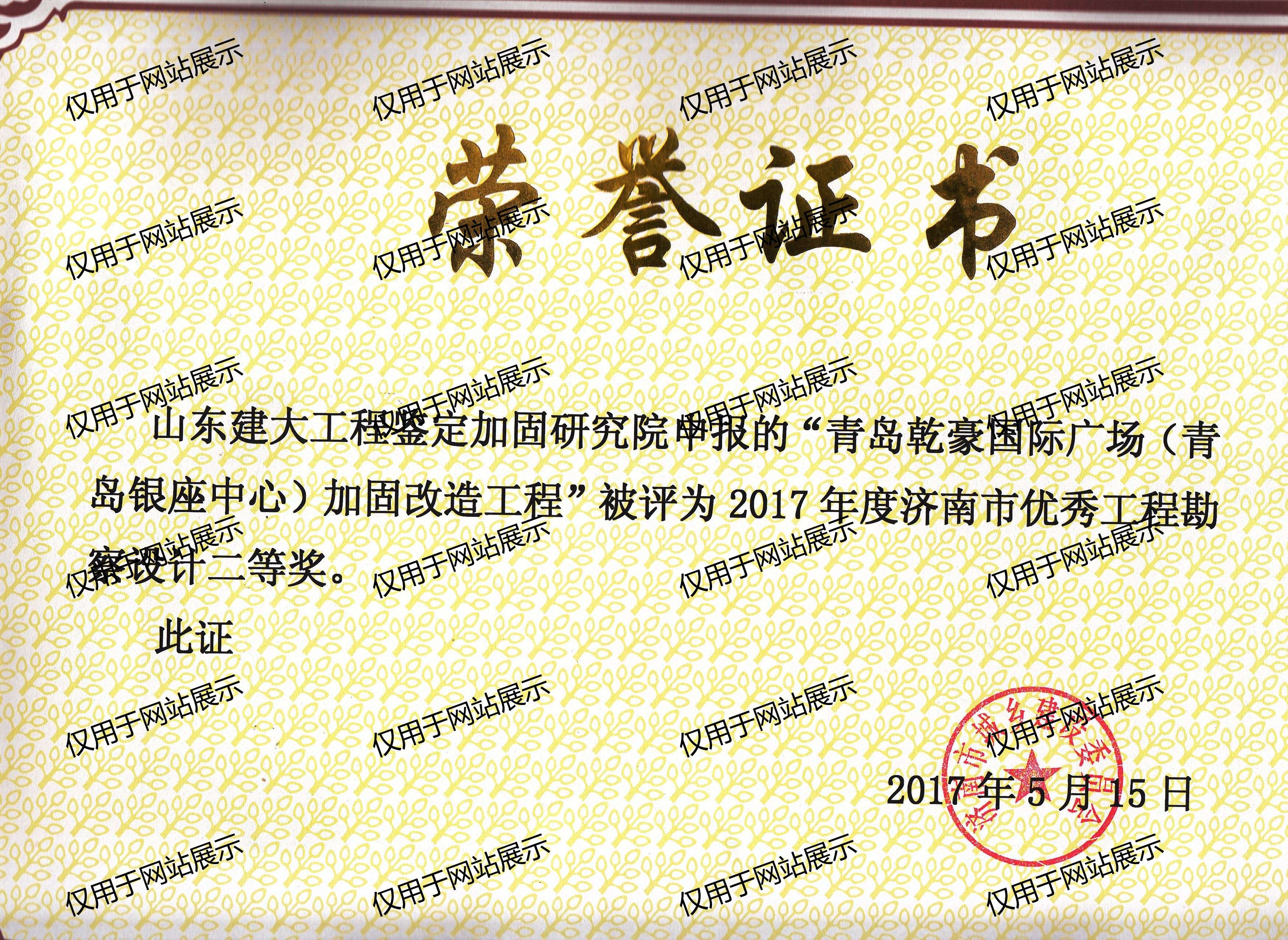 2017年度濟(jì)南市優(yōu)秀工程勘察設(shè)計二等獎