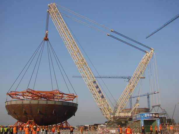 CVBH直徑39.624米(內(nèi)徑),高11.5米,是海陽2號核島鋼制安全殼(CV)的第一個(gè)運(yùn)輸?shù)跹b組件,運(yùn)輸總重量741.23噸,吊裝總重量862.42噸。