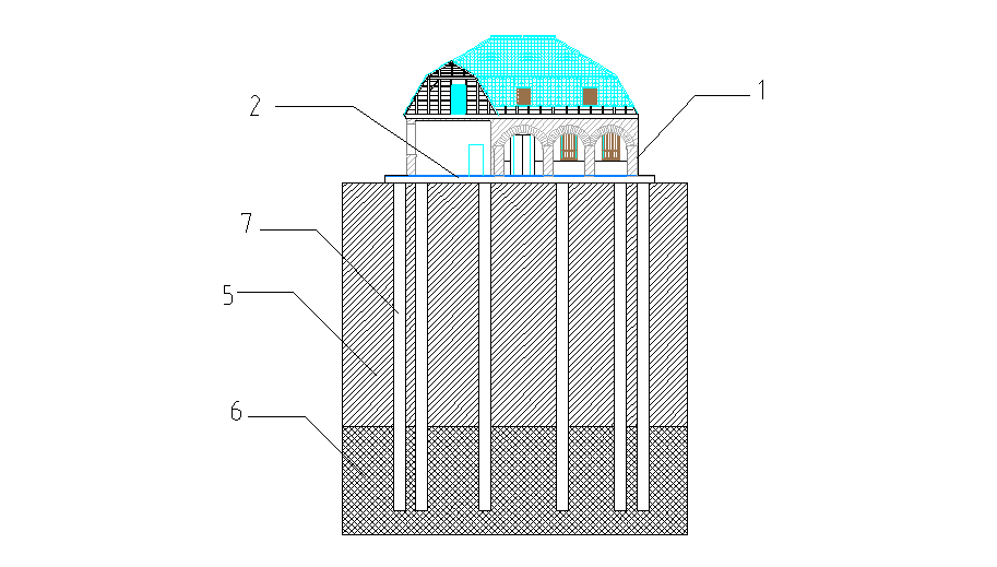 濟南皮膚病醫(yī)院位于濟南市中山公園東老商埠一期地塊內(nèi),歷時百年,為仿德式歷史風貌建筑。該建筑物為單層帶局部地下室的砌體結(jié)構(gòu),建筑面積約165.08平方米,其南立面見圖8。山東融匯建設開發(fā)有限公司在對該地塊開發(fā)的同時,本著保護文物傳承文化的目的,擬對該建筑原址保護,并在其下方增設三層地下停車場。